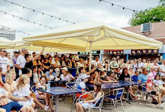 Праздник прошел, конечно, с юмором и конкурсами от ведущего, а Гарик с нашими поварами приготовили и угостили вас сумасшедшим объемом хот-догов.
