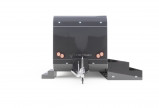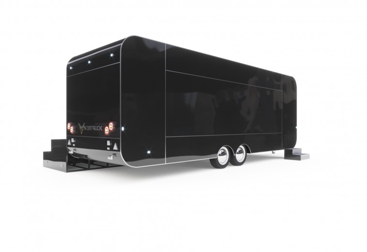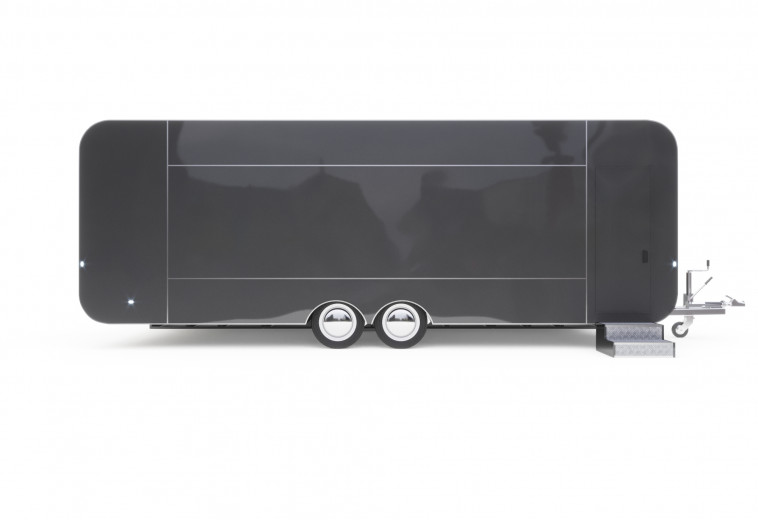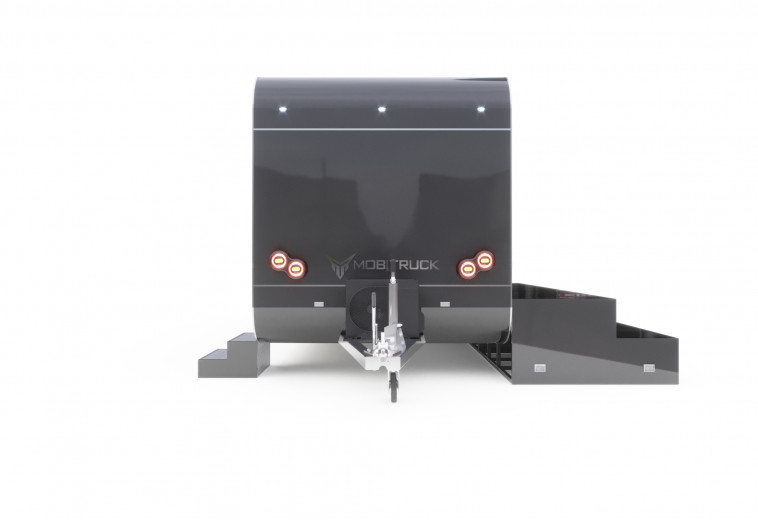 На корпусе установлены два блока по две фары спереди и два блока по два фонаря сзади. Установленная светотехника соответствует европейским стандартам. Внутренняя облицовка стен и потолка - нержавеющая сталь AISI 430 толщиной не менее 0,5 мм. Пирог пола - рифленый алюминий (квинтет) 1,5 мм, подложка 4 мм, ламинированная фанера 12 мм, утепление пола - 50 мм, ламинированная фанера 12 мм. Утепление стен негорючим утеплителем - 40 мм. Дышло прицепа имеет V-образную форму. Резино-жгутовая ось нагрузкой до 1 800 кг под диск 5x112 для легкового прицепа – 2 шт. Общая грузоподъёмность 3 600 кг. Колесный тормоз - тип 2361 AL-KO. Кованые рычаги AL-KO. Профиль трубы шестигранный. Колесо в сборе 195R14C8 5,5J х 14 H2 (112x5) 900 кг. Допустимая масса прицепа: 3600 кг. Механизм тормоза наката с фланцевым соединением тип Profi. Исполнение: под V-образное дышло. Комплектация: со сцепным устройством AK351. Нагрузка на шар фаркопа (ТСУ): 150 кг. Автоматическое опорное колесо с приваренным кронштейном крепления к дышлу прицепа и складной ручкой. Материал диска – сталь. Материал колеса – резина. Встроенный упорный подшипник – да. Статическая нагрузка - 800 кг. Винтовая опора для прицепа, прицепа-дачи, торгового прицепа – 4 шт, нагрузка на каждую опору - 800 кг. Возможность подключения к внешним сетям электроснабжения 220/380 V или внешнему генератору через специальный щиток с блоком разъёмов. Электрощит навесной 54 IP 40 прозрачная черная дверца BNK 40-54-1 модуля со счетчиком (ЦЭ-6803В 1 3Ф 5-60А 230В 1-й класс точности 1 тариф) и автоматами защиты (фирмы ABB), устройством дифференциального тока (УЗО) (фирмы ABB) раздельно на каждую из групп потребителей. Мощность до 45 кВт.