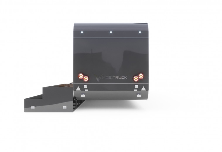 Наружное освещение встроено в открывающуюся верхнюю створку окна. Нижняя створка изнутри обшита сварным нержавеющим листом, крепление выполнено с минимальным количеством заклепок, для обеспечения ровной и гладкой поверхности в открытом состояние. Внутренне освещение - две светодиодные ленты. Внутреннее дополнительное освещение над рабочими поверхностями. Хромированные колпаки на колеса. Огнетушитель. ПТС с указанием назначения, VIN номер. Механизм открывания оконных створок – газлифт. Дверь прицепа открывается с помощью специального трубного механизма и направляющей для плоскопараллельного открывания вдоль прицепа. Все внутренне оборудование выполнено в соответствии со стандартом HACCP (ХАССП). На мобитрак выдан сертификат HACCP (ХАССП).