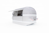 Крышки окон защищают от солнца и дождя, предусмотрен внешний прилавок для покупок и сумок.