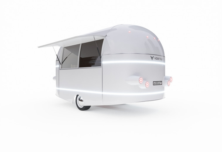 Крышки окон защищают от солнца и дождя, предусмотрен внешний прилавок для покупок и сумок.