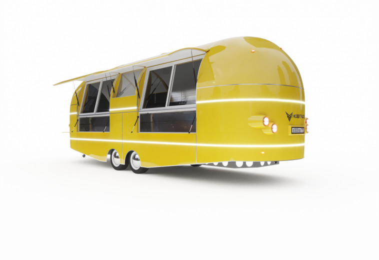 Внутреннее дополнительное освещение над рабочими поверхностями. Хромированные колпаки на колеса. Огнетушитель. ПТС с указанием назначения, VIN номер. Механизм открывания оконных створок – газлифт. Дверь прицепа открывается с помощью специального трубного механизма и направляющей для плоскопараллельного открывания вдоль прицепа. Все внутренне оборудование выполнено в соответствии со стандартом HACCP (ХАССП). На мобитрак выдан сертификат HACCP (ХАССП).