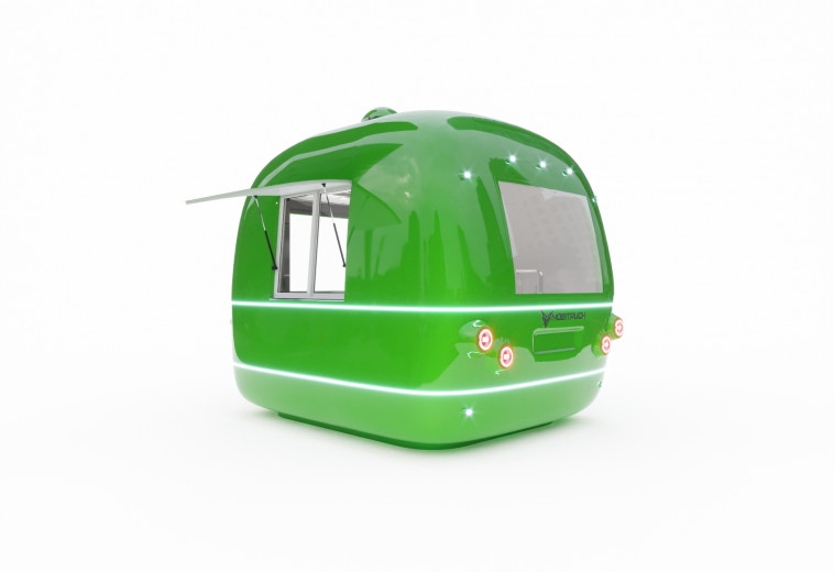 Крышки окон защищают от солнца и дождя, предусмотрен внешний прилавок для покупок и сумок.